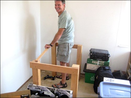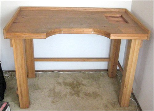 I am officially portable now. Yesterday, my dad came out and picked up all of my stuff (it's now living in the shed behind his house). And with all the boxes went my beautiful workbench, my partner-in-crime for all of the jewelry and headbadges that I have made and all the experiments that have gone terribly awry.