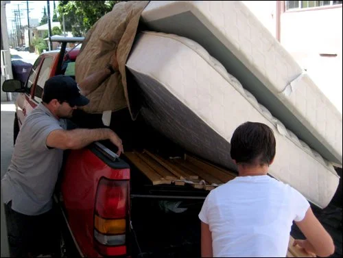 This afternoon, I bid farewell to our bed... and moved us one step closer to camping in the apartment. Our neighbor thought I was crazy for letting it go (and especially crazy that I didn't charge a whole lot of money for it), but I was (and still am) happy to pass it along to its new owner, the sister of a friend's friend. To me, it seemed silly for us to store the bed and frame for some unknown amount of time when someone else could use it. Plus, I believe in karma, and I believe that our giving away furniture will come back around in some good way in the future.