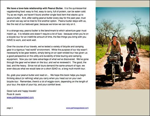 Panniers & Peanut Butter is 75 pages, over 20,000 words. It goes way beyond a simple list of our stuff, or even a technical look at the pros and cons of different items. It's chock-full of photos, tips, stories, lessons - and probably everything you could want to know about all of our gear.