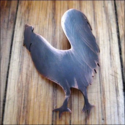 A custom headbadge is a great way to personalize your ride. What's a headbadge? It's like a hood ornament for your bicycle. Laura hand-makes headbadges in copper and sterling silver, and is happy to help sketch out a design. More information and a few photos of previously-made headbadges are here and you can email her to order.